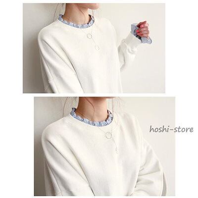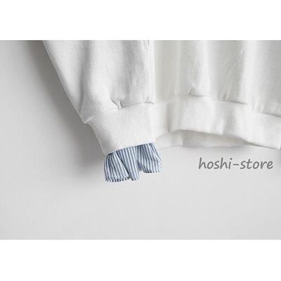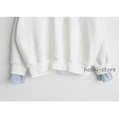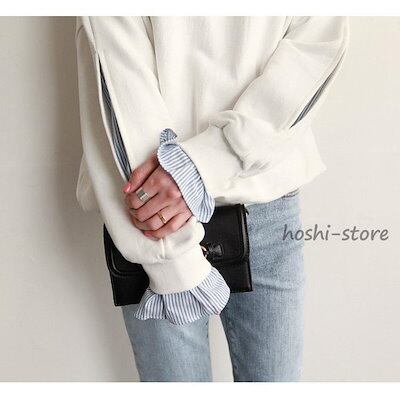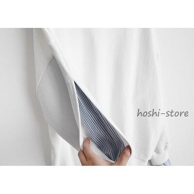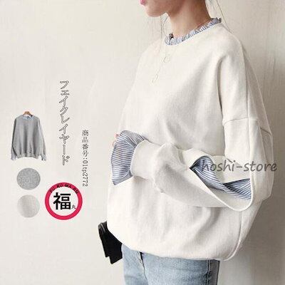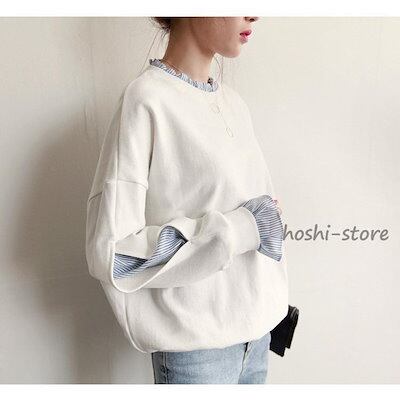 Tシャツ 春 トップス ブラウス プルオーバー レディース フェイクレイヤード コーデ Uネック 2色スプライス 長袖 柄 シンプル ゆったり きれいめ 通気性 30代
