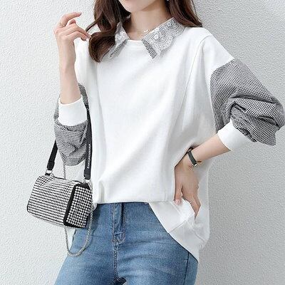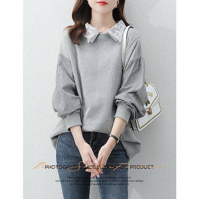パーカー レディース 40代 春 秋 長袖 切り替え トップス スウェット チェック 柄 配色 プルオーバー パーカー カジュアル 大きいサイズ 着痩せ 可愛い ゆったり カジュアル 通勤 OL 日