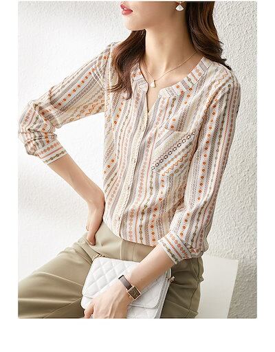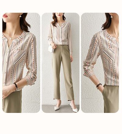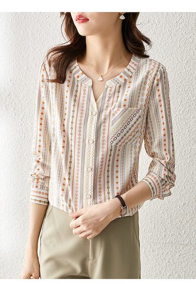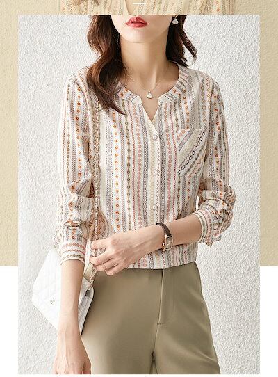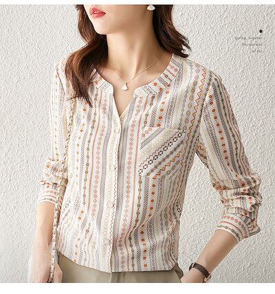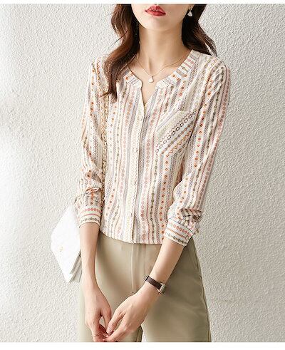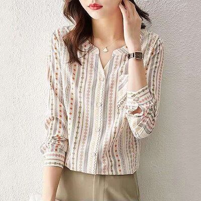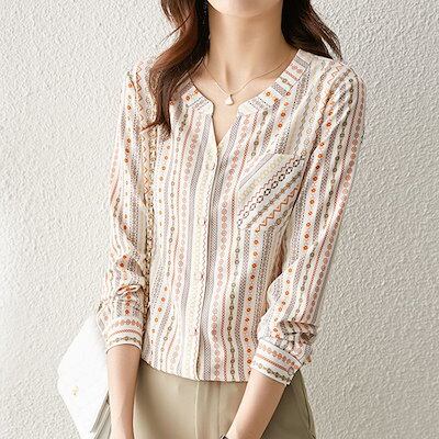 ブラウス レディース 春秋 綿 柄 シャツ 長袖 オフィスカジュアル おしゃれ 50代 40代 30代 大人可愛い 着やせ きれいめ 通勤OL