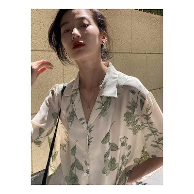 アロハシャツ レディース ボタニカル リーフ リゾート アロハ かりゆしウェア シアーシャツ トップス 半袖 羽織り 柄シャツ トップス 花