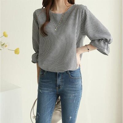 ブラウス 八分袖 レディース 柄モノ チェック柄 シャツブラウス 着痩せ モノトーン細見え 華やか 半袖 夏 春 秋 きれいめ 上品