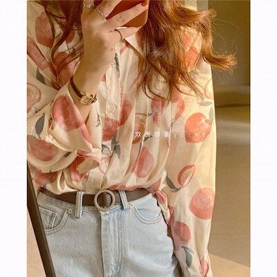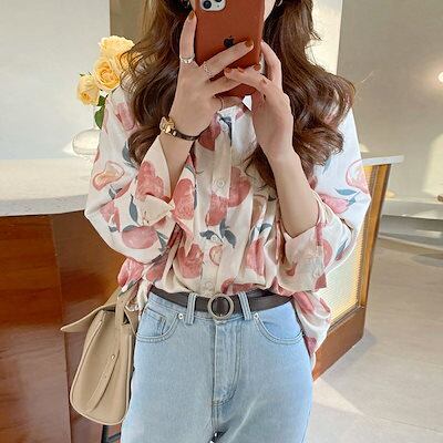 ブラウス シャツ レディース 長袖 シフォン 上品 ファッション 人気 レトロ 可愛い 着痩せ トップス 柄付き ガールズ ブラウス