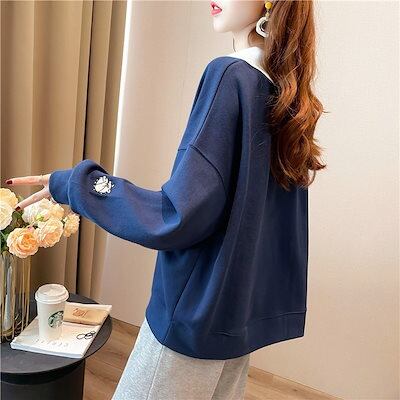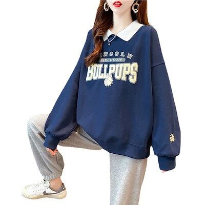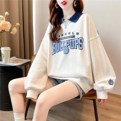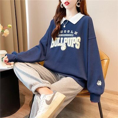 パーカー ゆったりスウェット スウェット あったかルームウェアポロ襟衛衣少女秋中学校高校生学院ゆったり薄手長袖上着