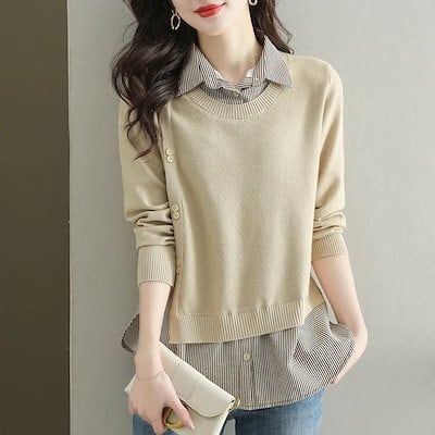 人気なリブニット ベーシックニット ニットウェア 秋冬に着たい 韓国ファッション ニットインナー 長袖ニットソー 無地 インナー トップス 長袖ニットセーター インナー レディース 暖かい