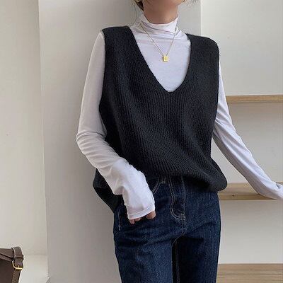 人気なリブニット ベーシックニット あったか!カシミヤタッチ 韓国ファッション ニットベスト Vネック セーター ベスト ニットレイヤード トップス ゆったり 着痩せ 百掛け ニット