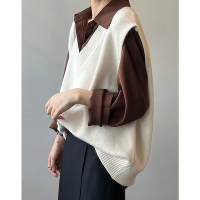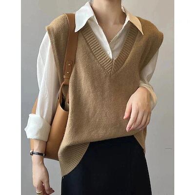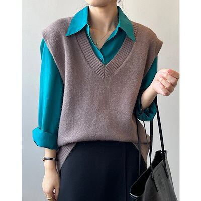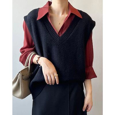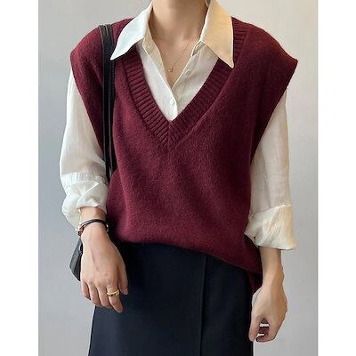 人気なリブニット ベーシックニット あったか!カシミヤタッチ 韓国ファッション ニットベスト Vネック セーター ベスト ニットレイヤード トップス ニット