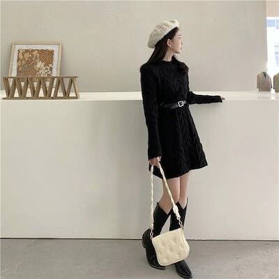 人気なリブニット ベーシックニット あったか!カシミヤタッチ カシミヤタッチワンピース韓国ファッションニットセーター ワンピーススリミング百掛けロングセーターレディース ニットワンピース