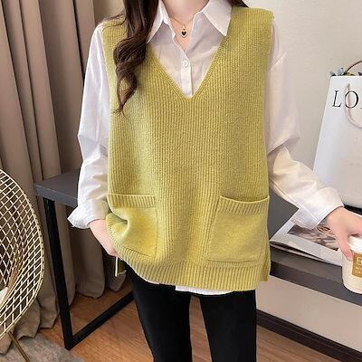 人気なリブニット ベーシックニット あったか!カシミヤタッチ 韓国ファッション ニットベスト セーター ベスト ニットレイヤード トップス ゆったり 着痩せ 百掛け ニット
