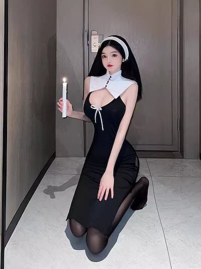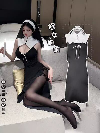 ロリータ 二次元 メイド服 コスプレ修道女の衣装セクシーな女装ハロウィン吸血鬼タイトなロールプレイングステージパフォーマンス衣装 韓国ファッション