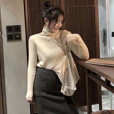 ベーシックニット あったか!カシミヤタッチ 今っぽシアーシャツ ラブリータートルネック秋冬厚手レディース韓国風ハイネック長袖ニットタート ラブリータートルネック ラウンドネックニット ブラウス