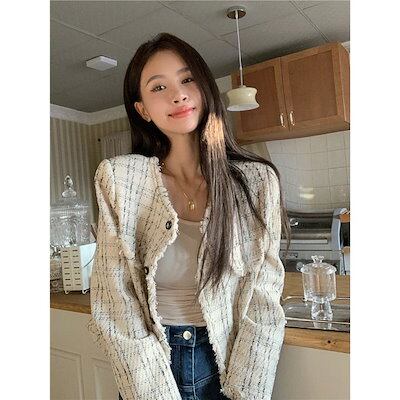 ジャケット 冬アウター レトロな気質ショート女性 新しいスタイルシックなルーズスリム長袖カーディガントップ
