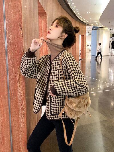 ジャケット 冬ジャケット 秋アウター 韓国ファッション スーツ コート 短いスタイル 気質 千鳥格子 チェスターコ人気アウターはボアで決まり/人気ボアアウター キルティングコート 冬アウター 春トレン