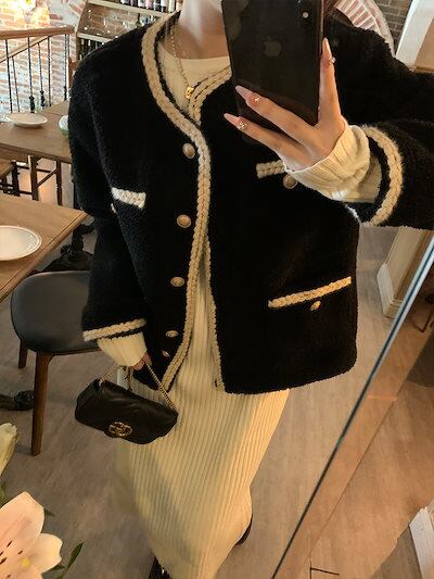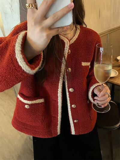 ジャケット 冬アウター 赤い子羊ぬいぐるみ女性のデザインセンスニッチ 秋冬の新しいスタイルプラスベルベットと厚い
