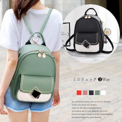 ミニリュック バイカラー レディース 3way おしゃれ リュックサック 小さめ バックパック フェイクレザー デイパック 配色