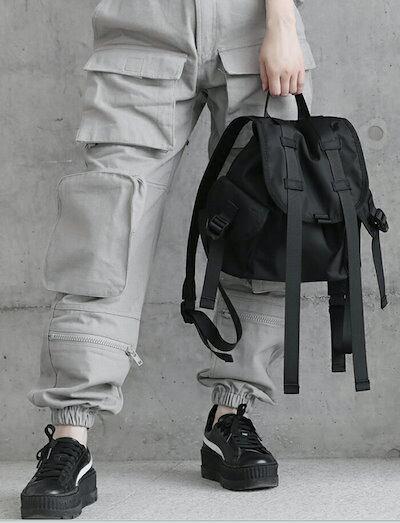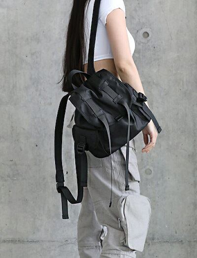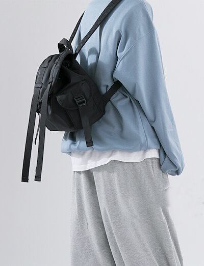 【男女兼用】軽量 ミニリュックサック おしゃれ ナイロン製 盗難防止 小さめ 巾着付き 旅行・通勤用 バックパック かばん 丈夫で長持ち ブラック