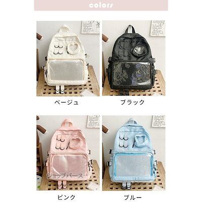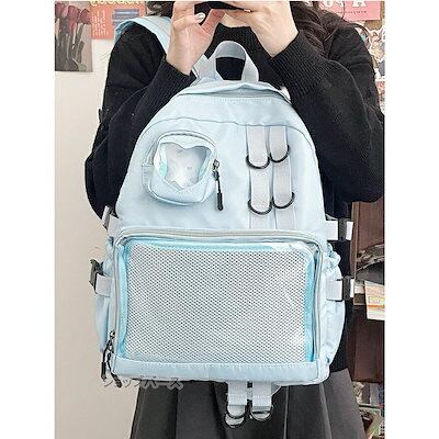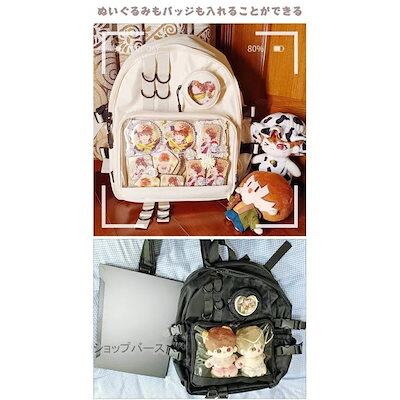 痛バッグ a4 リュックサック 大きめ バッグ クリアバッグ バックバッグ A4 撥水 透明 おしゃれ かわいい ぬいぐるみ ナイロン 缶バッジ 痛バ ガールズ 大容量