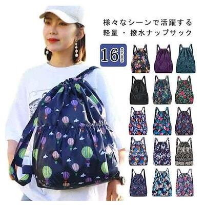 工ガ割-[即納:1‐3営業日]おしゃれ ナイロン ナップサック バッグ ジム スポーツ ジムサック リュック 防水 ナップサック リュックサック 大きめ フロントポケット付 可愛い