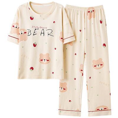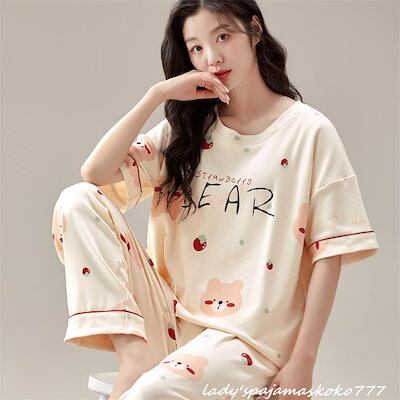 上下セット セットアップ Tシャツ 運動着 ルームウェア 綿 可愛い 女子 半袖 レディース 柄物 カジュアル服 部屋着 長ズボン パジャマ 春夏
