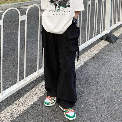 ワイドパンツ カーゴパンツ メンズ レディース ミリタリー 春 夏 秋 カーゴ コットン ガウチョパンツ 無地 ボトムス ポケット 長ズボン 大きいサイズ ウエストゴム 体型カバー 着回し アウトドア