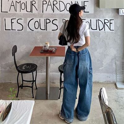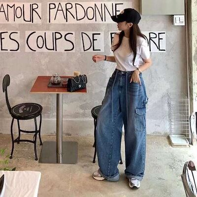ワイドパンツ カーゴパンツ レディース ロング丈 デニム 春 秋 無地 シンプル ワークパンツ ゆるっと ジーンズ シンプル 秋冬 ワイド 大きいサイズ ハイウェスト 美脚 おしゃれ 通勤 流行 トレ
