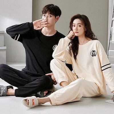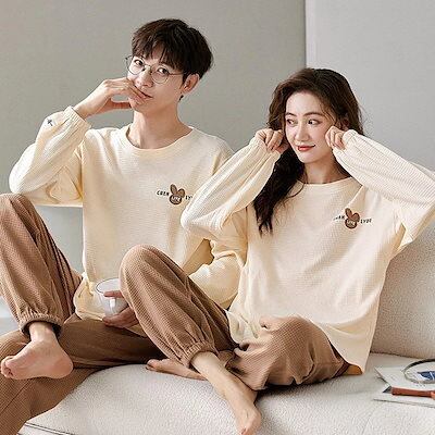 大人気 上品 ペアパジャマ カップル 長袖 春秋冬サテン パジャマ ペア レディース 長ズボン 用 お揃い 夫婦 メンズ 上下セット セットアップ