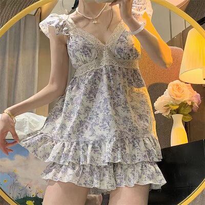 ルームウェア パジャマ レディース 2023 新入荷 部屋着 春夏 パジャマ 韓国 胸当て付き 半袖 半ズボン 2点セット スカート枚