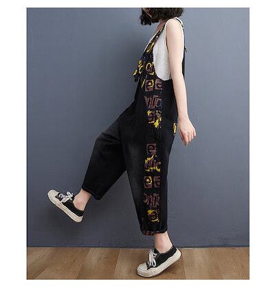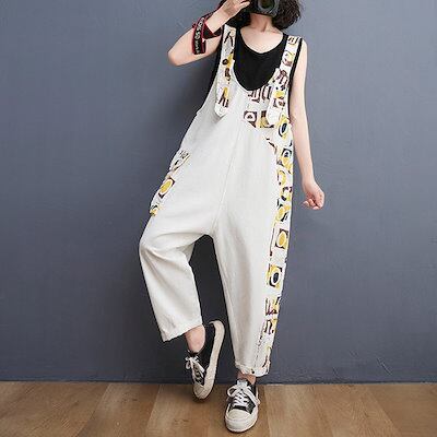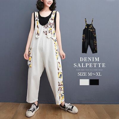 オーバーオール サロペット レディース パンツ 春 夏 秋 オールインワン ゆったり ロング丈 ワイドパンツ 着痩せ ズボン プリント ボトムス  大きいサイズ カジュアル サイドポケット 20代 3