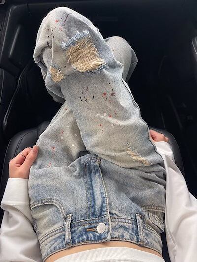 【3日以内に出荷】潮パンツ レディースタイダイジーンズ春と秋ストレートパンツワイドパンツ