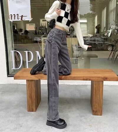 【3日以内に出荷】ワイドパンツジーンズ レディース新しいスタイルストラップストレートレッグ・パンツ