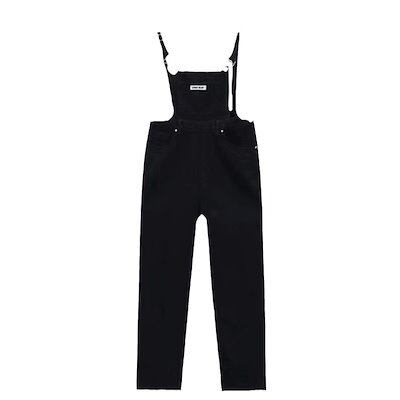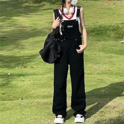 【3日以内に出荷】ブラックデニムストラップパンツ レディース新しいスタイルトレンドルーズストレートサスペンダー