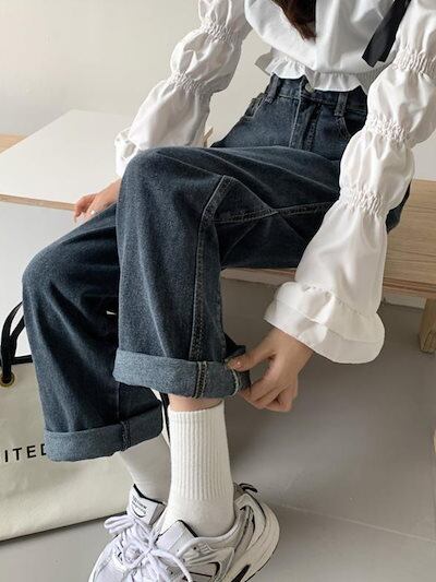 デニムパンツ ブルー ワイドパンツ ジーンズ レディース 2025 春 新しいスタイル ルーズ ストレートパンツ