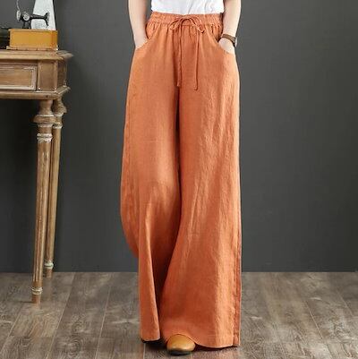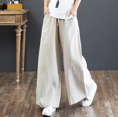 ワイドパンツ コットンリネン レディースパンツ ゆったり 大きいサイズ ワイドパンツ ハイウエストパンツ ストレートリネンパンツ