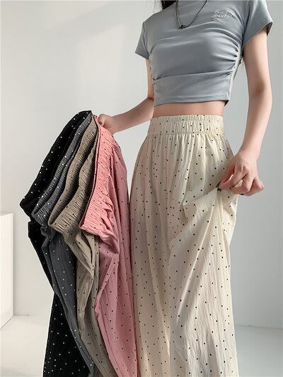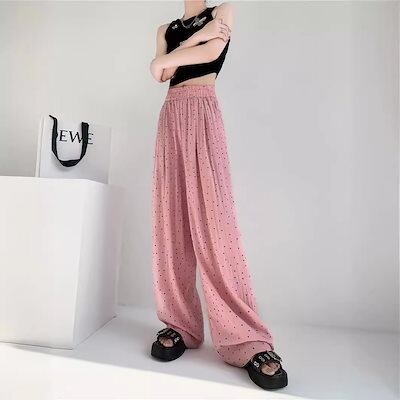 ワイドパンツ 水玉ワイドパンツ レディース 春夏 薄手 アイスシルク ドレープ ストレートパンツ