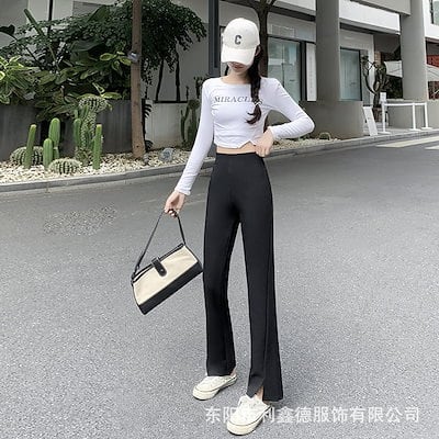 人气 2024秋スリムストレッチレディース細ストレートスプリットカジュアルパンツ
