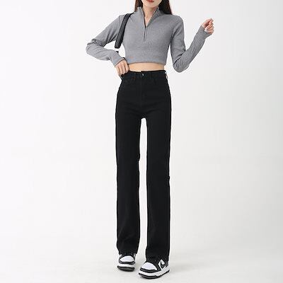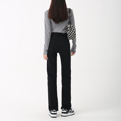 デニムボトムス ストレートパンツ ジョガーパンツ モップパンツ コーディネート ジーンズ レディース 秋 ハイウェスト ストレートパンツ 修身 コーディネート ジョガーパンツ