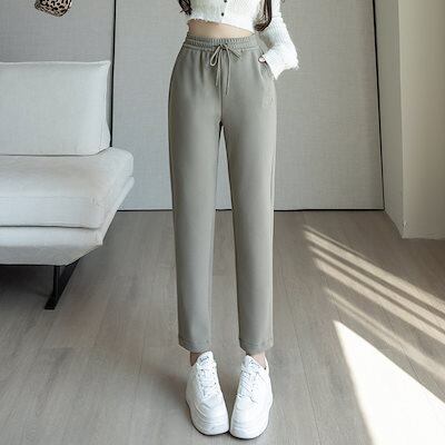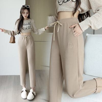 ェアのための新しいスタイルのカジュアル防風パンツウエストパンツ小さなズボン脚レディースパンツプラスベルベット韓国風スウェットパンツハイウエストストレートパンツカジュアルパンツ8分丈パンツ