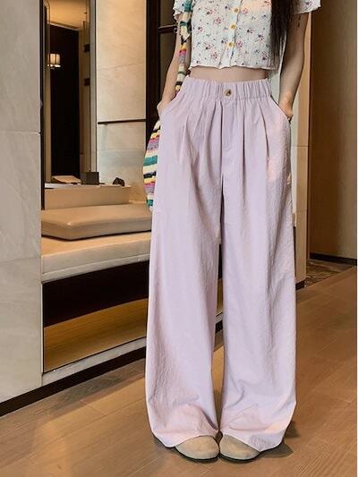 [4カラー] 快適 ワイドパンツ ゆとりがある ファッション ストレートパンツ