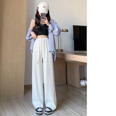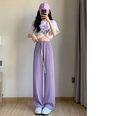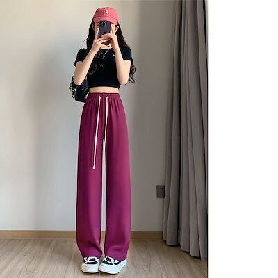 ワイドパンツポケット レディース 夏 ニューデザイン ハイウェスト カジュアル ストレートパンツ パンツスーツ アイスシルク