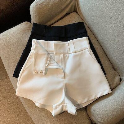 脚見せショートパンツ お得なショーツ スパイスガールズ ホワイトスーツショートパンツ レディースハイウエストパンツ 2024春夏新作細身ストレートカジュアルワイドパンツ
