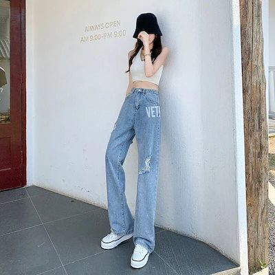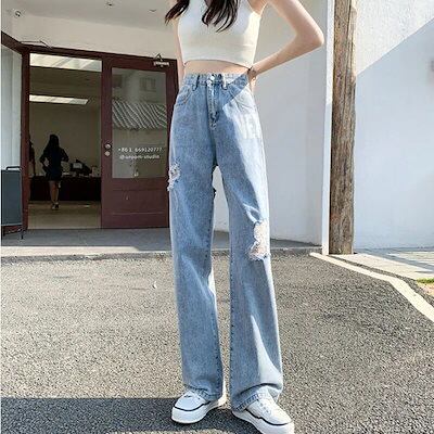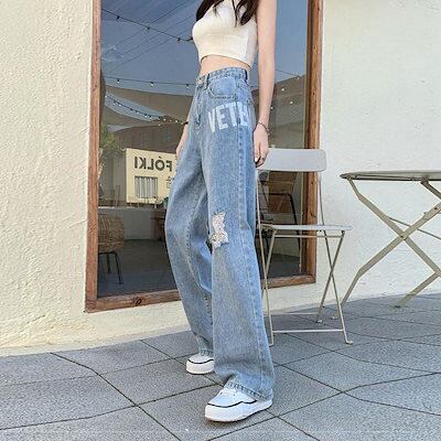 ジョガーパンツ ダメージジーンズ レディース ワイドパンツ ハイウェスト ゆったり ストレート モップパンツ ワイドパンツ