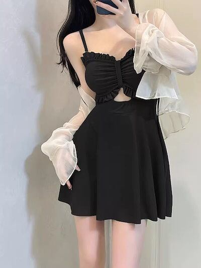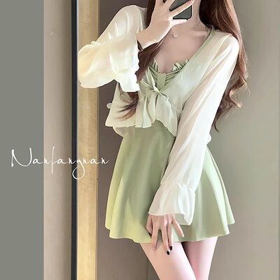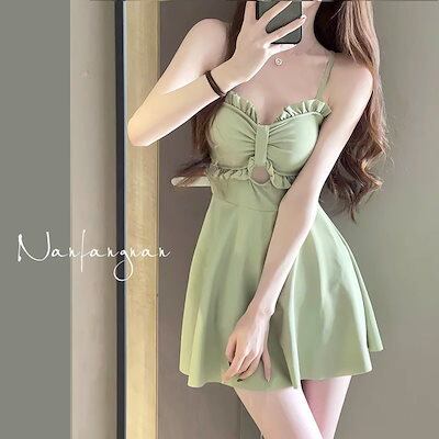 アボカドグリーン レディースワンピース スカート水着 2025 秋冬新作 スパ ホリデー水着 温泉フレッシュ水着