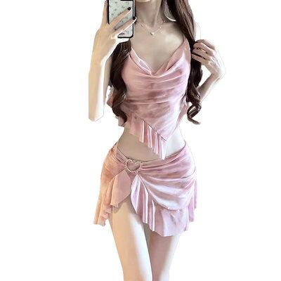 ピンク スプリット スカート 水着 レディース ワンピース 水着 2025 春・秋・冬新作 スパ ホリデー水着 温泉用 フレッシュ水着