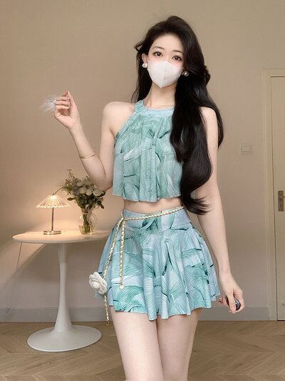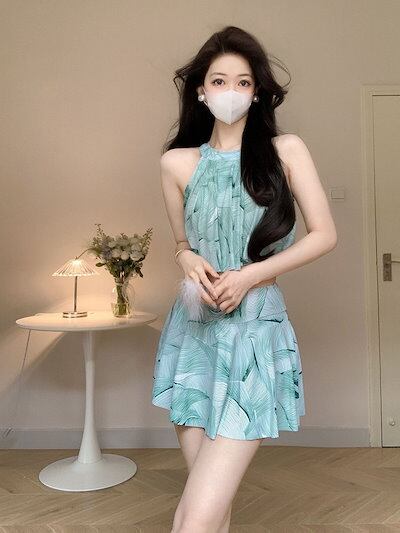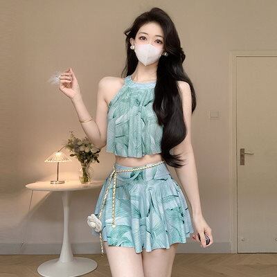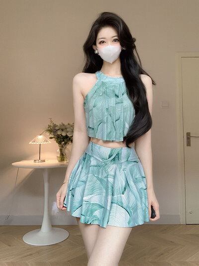 宝石グリーンビーチスパ水着レディースワンピースドレス水着2025新春秋冬スパホリデースイムウェア