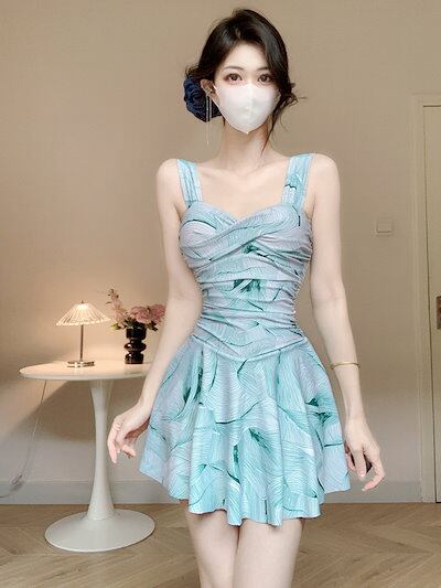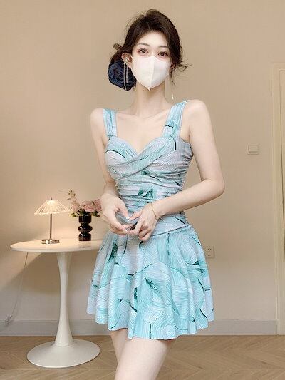 ネイビーブルーショートスカート水着ビーチスパ水着レディースワンピースワンピース水着2025新作春秋冬スパ休日水着