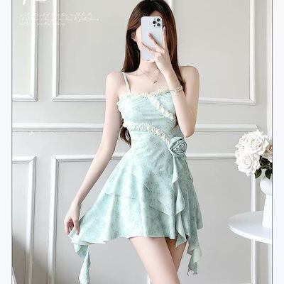 ミントクラッシュグリーン水着水着スーツビーチスパ水着レディースワンピースドレス水着2025新しい春秋冬スパ休日水着