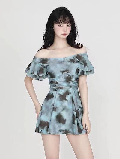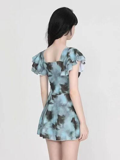 グリーンインク花柄水着水着ビーチスパ水着レディースワンピースワンピース水着2025新作春秋冬スパホリデー水着