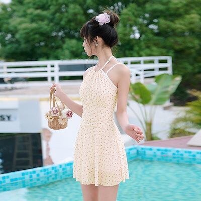 ベージュドット花柄水着水着ビーチスパ水着レディースワンピースワンピース水着2025新作春秋冬スパ休日水着