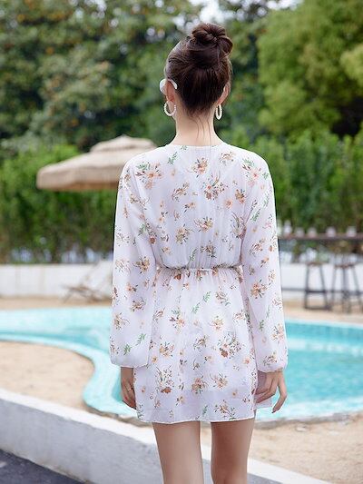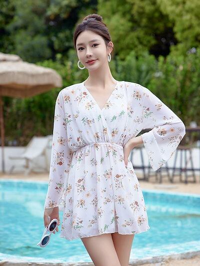 白 花柄水着 水着 ビーチ スパ水着 レディース ワンピース 水着 2025 新作 春 秋 冬 スパ ホリデー 水着