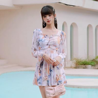 かわいい 白 花柄 水着 水着スーツ ビーチ スパ 水着 レディース ワンピース 水着 2025 新作 春 秋 冬 スパ ホリデー 水着