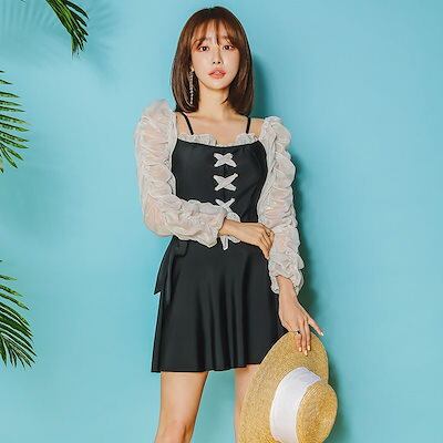 黒と白の弓の水着 甘くてかわいいスタイルの水着セット ビーチスパ水着 レディースワンピースドレス 水着2025 新しい春 秋 冬 スパ ホリデー水着